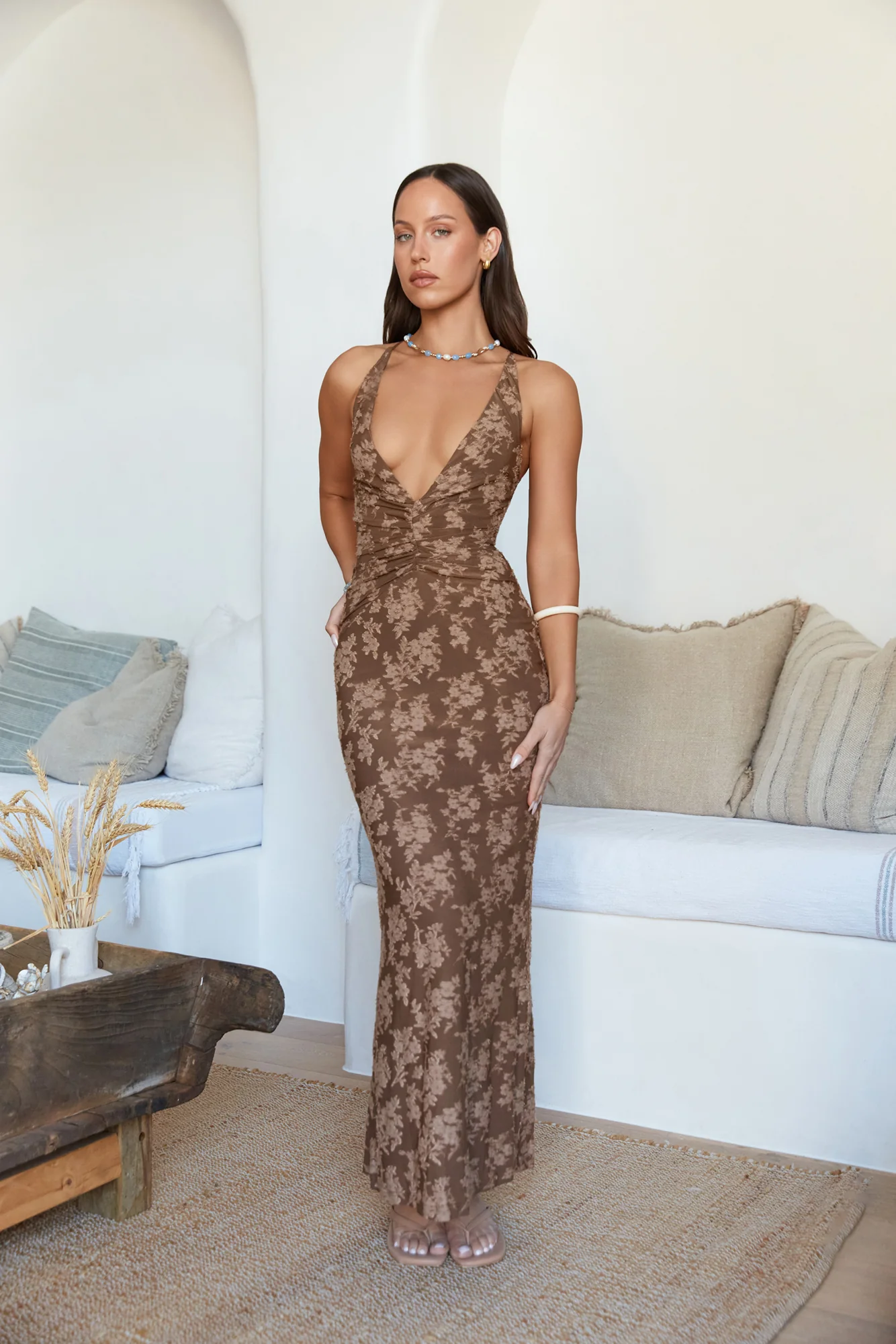 Dreamer Girl Backless Maxi Dress Brown