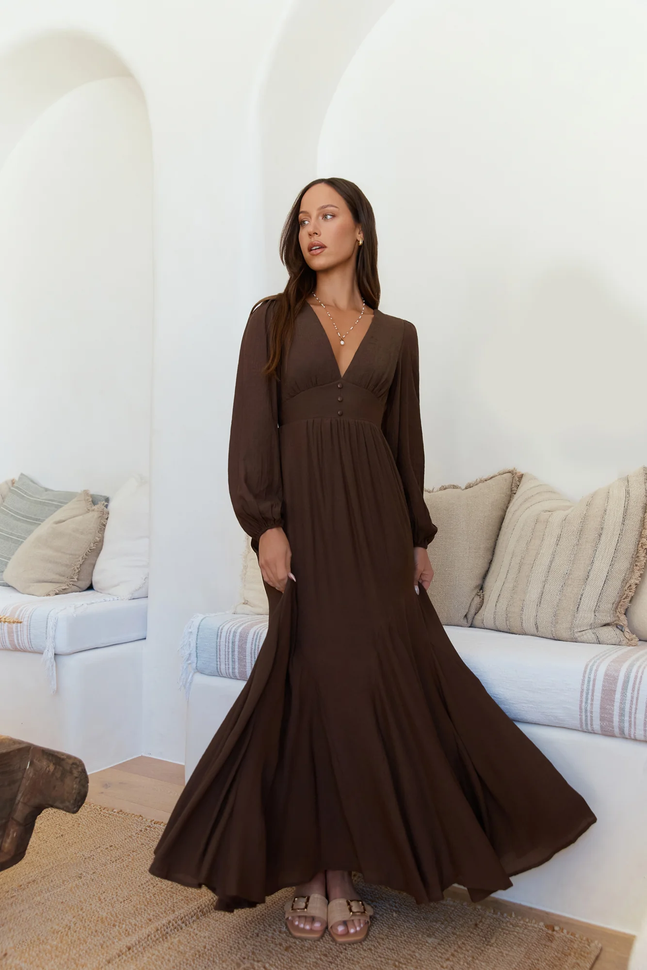 Sweeter Dreams Long Sleeve Maxi Dress Chocolate