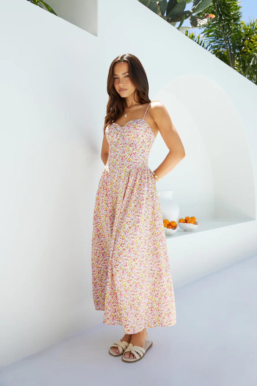Floating Orchid Maxi Dress White
