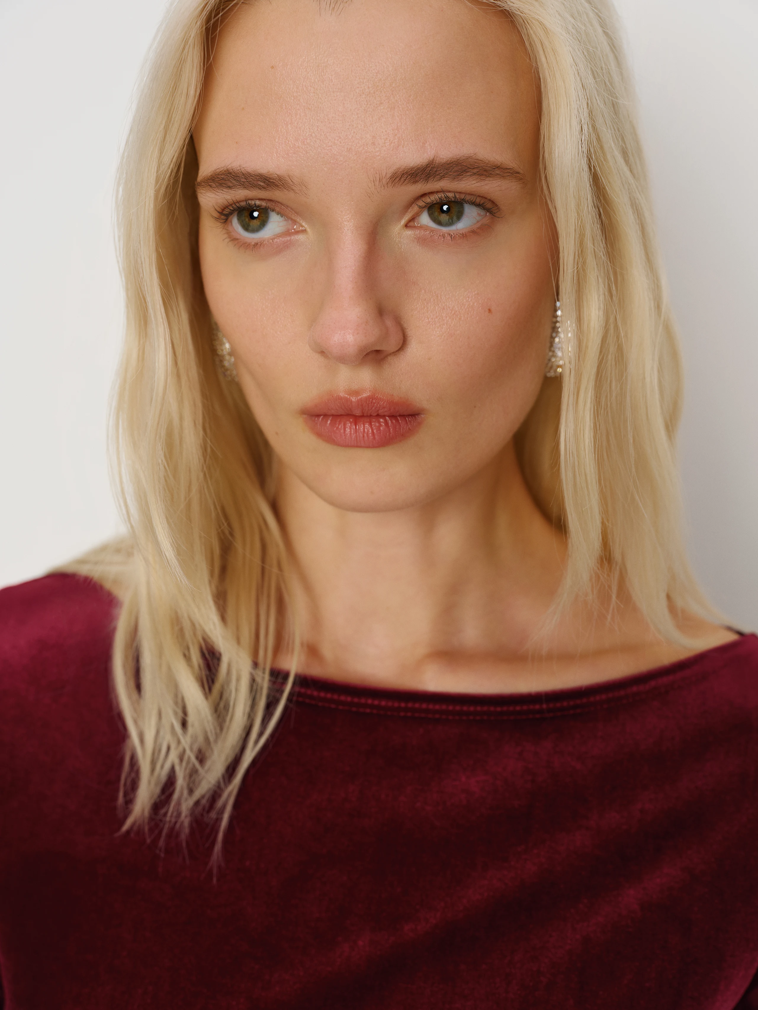 Parkley Boucle Off The Shoulder Sweater Burgundy
