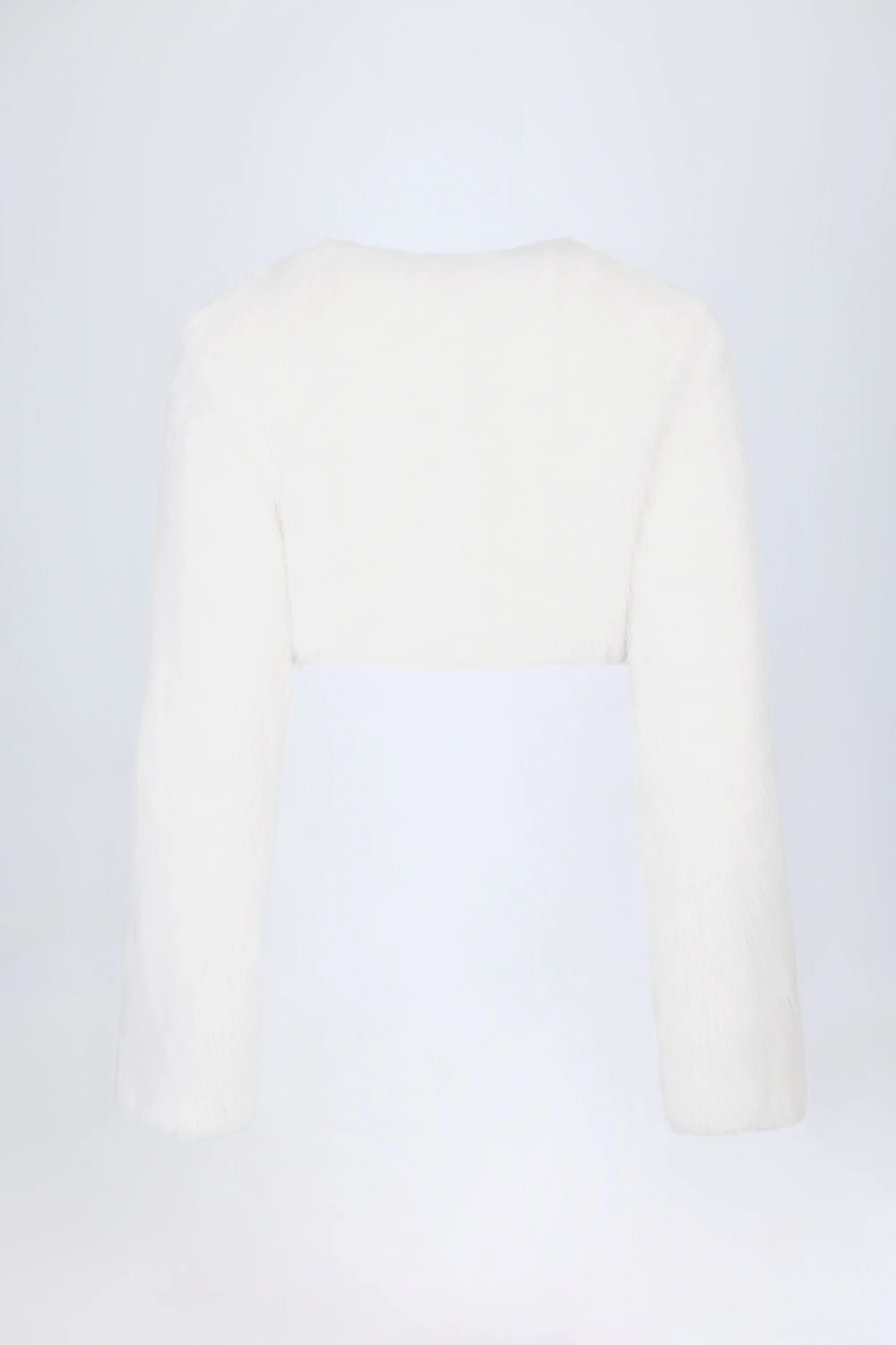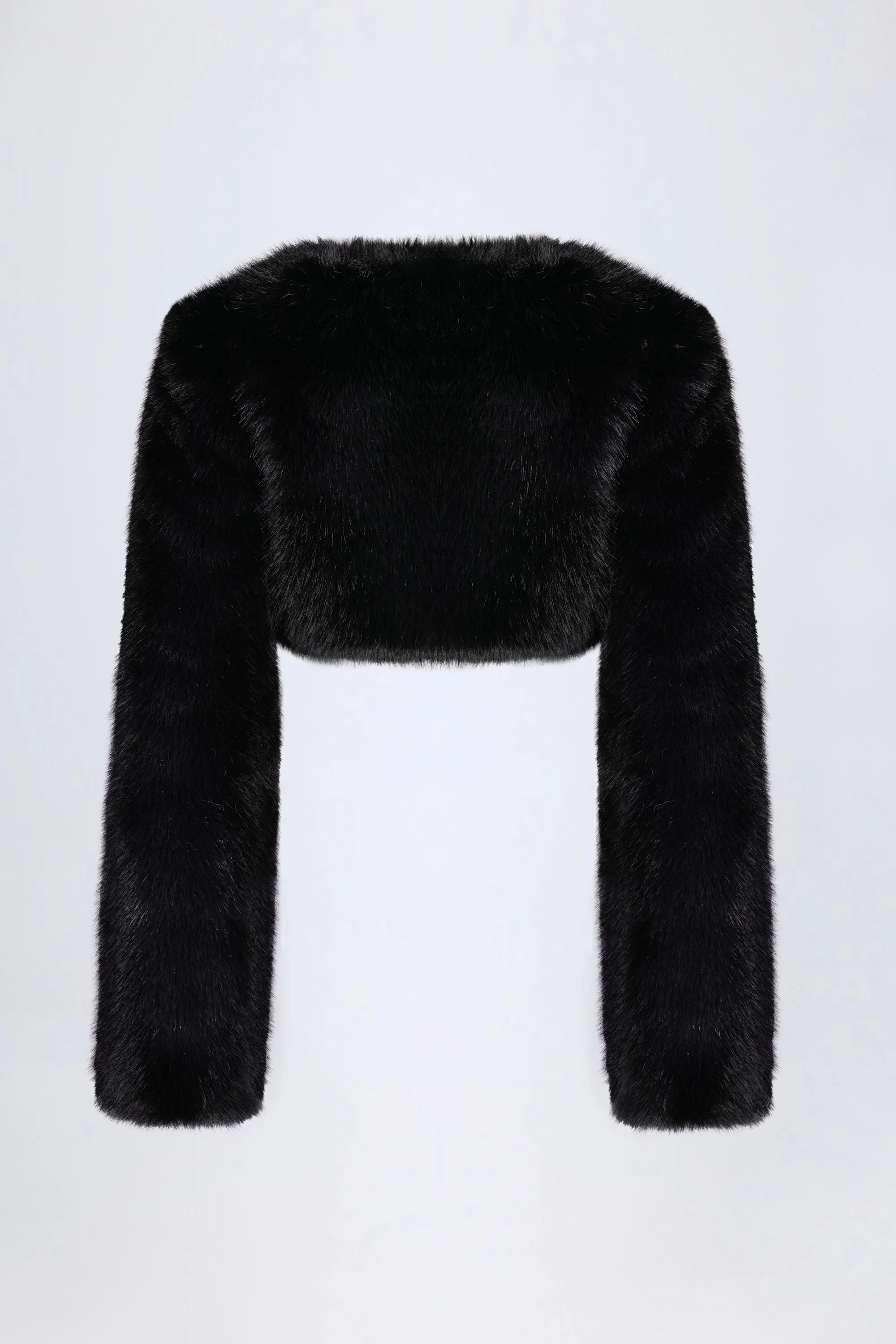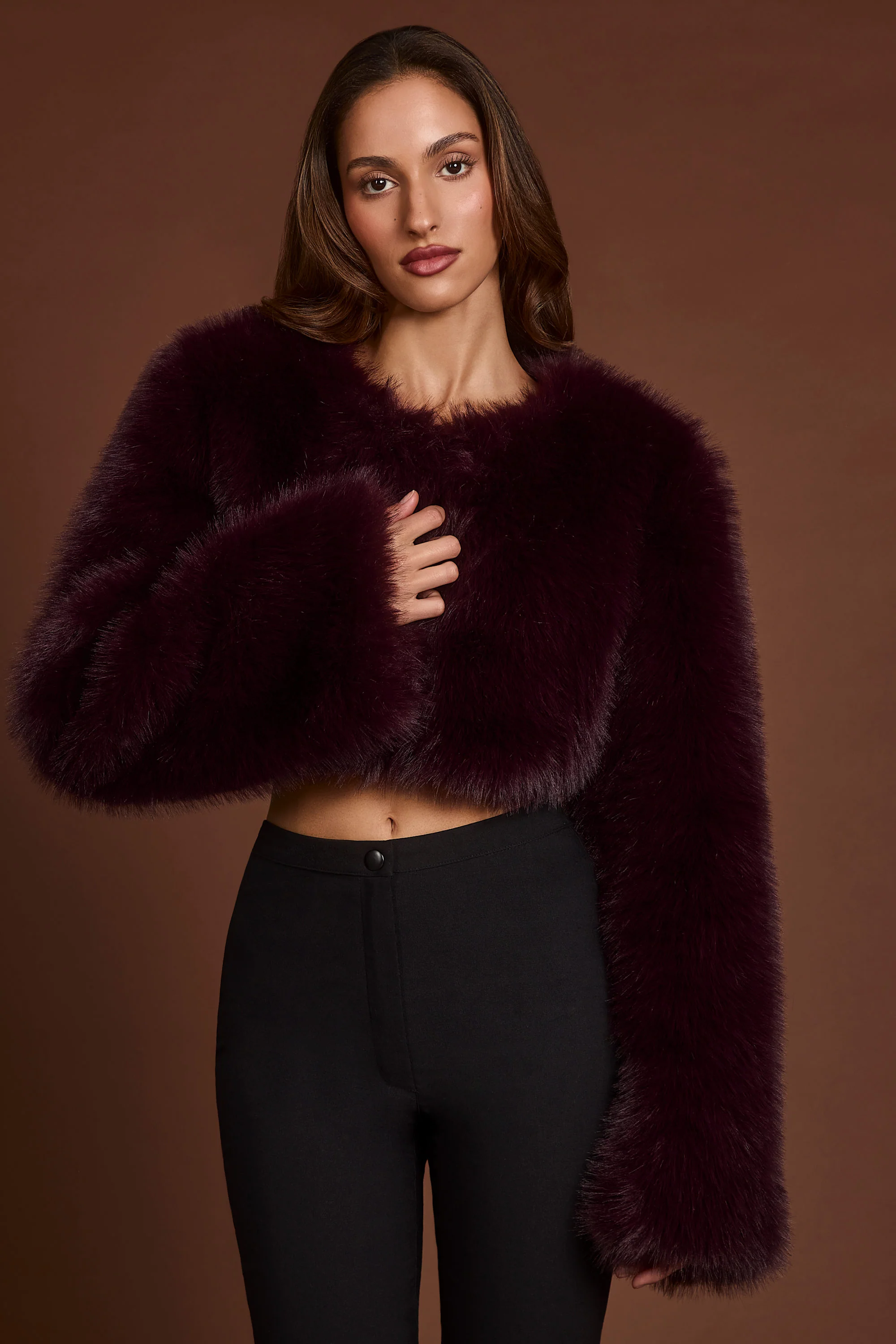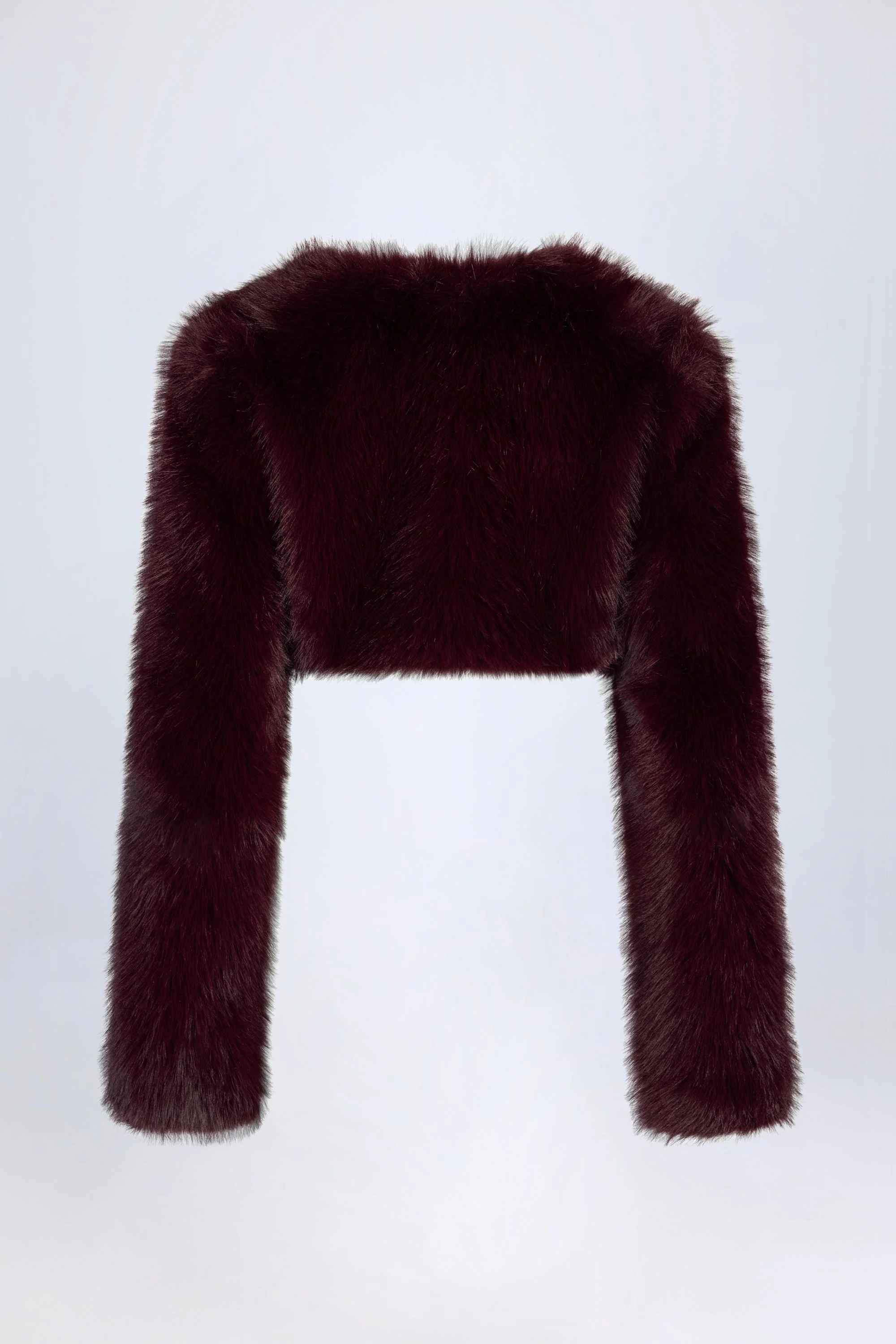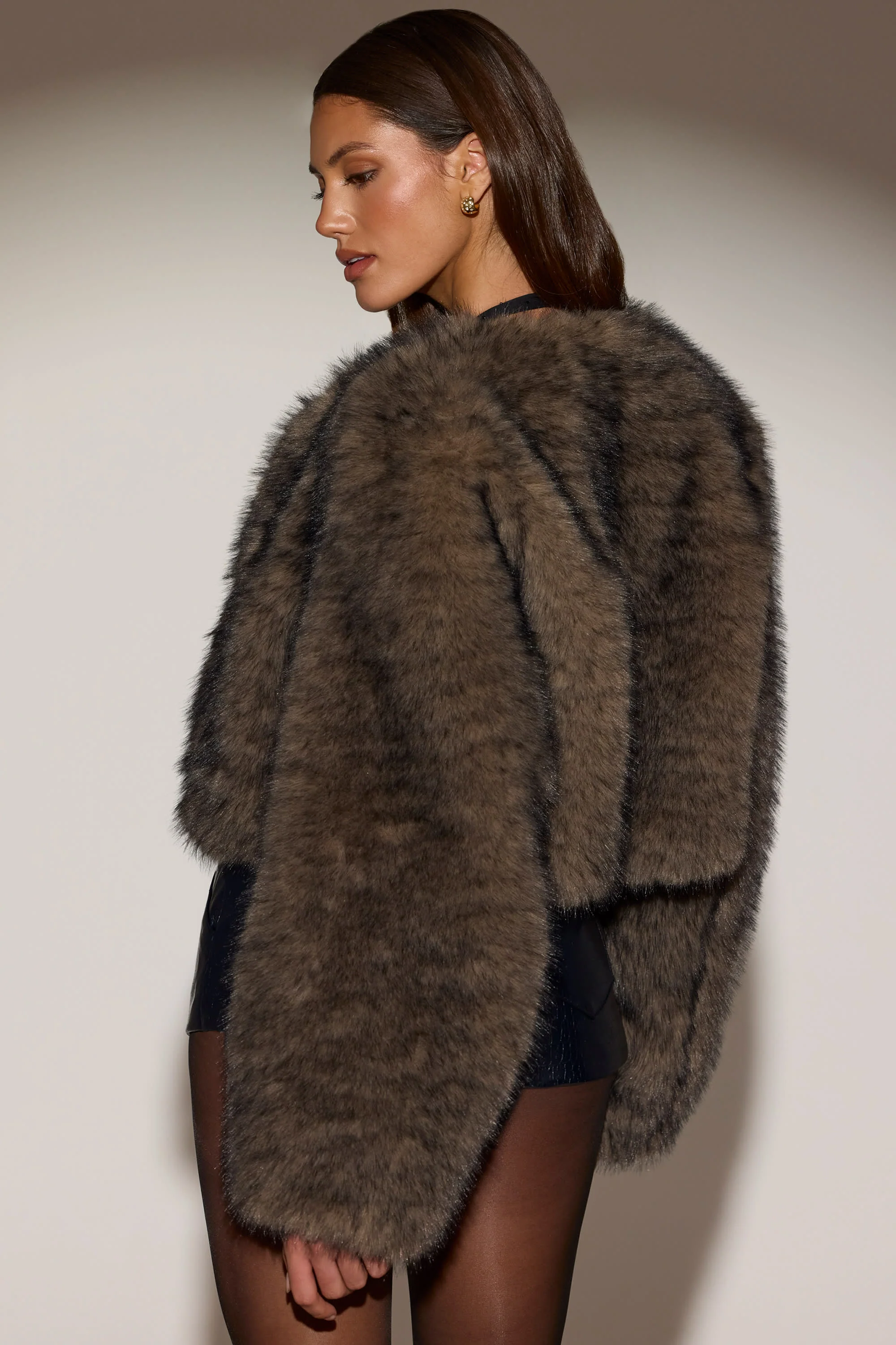 Cropped Faux-Fur Jacket in Chocolate Brown